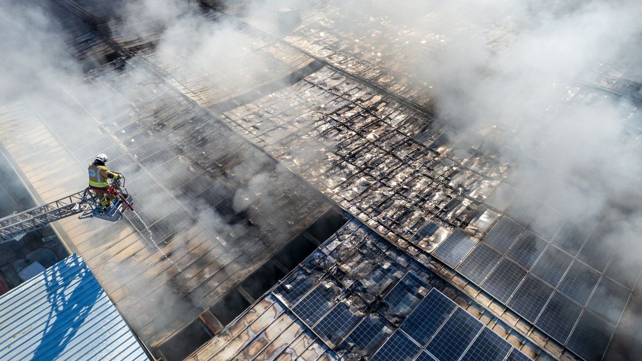 Dron ile havadan çekilen görüntülerde, yangının boyutu gözler önüne serildi. Alevlerin sadece çatıyı değil, çatıda kurulu olan güneş enerjisi panellerini ve fabrikanın iç kısımlarını da tamamen kullanılamaz hale getirdiği görüldü. İtfaiye ekiplerinin farklı noktalardan alevlere müdahalesi sürüyor.