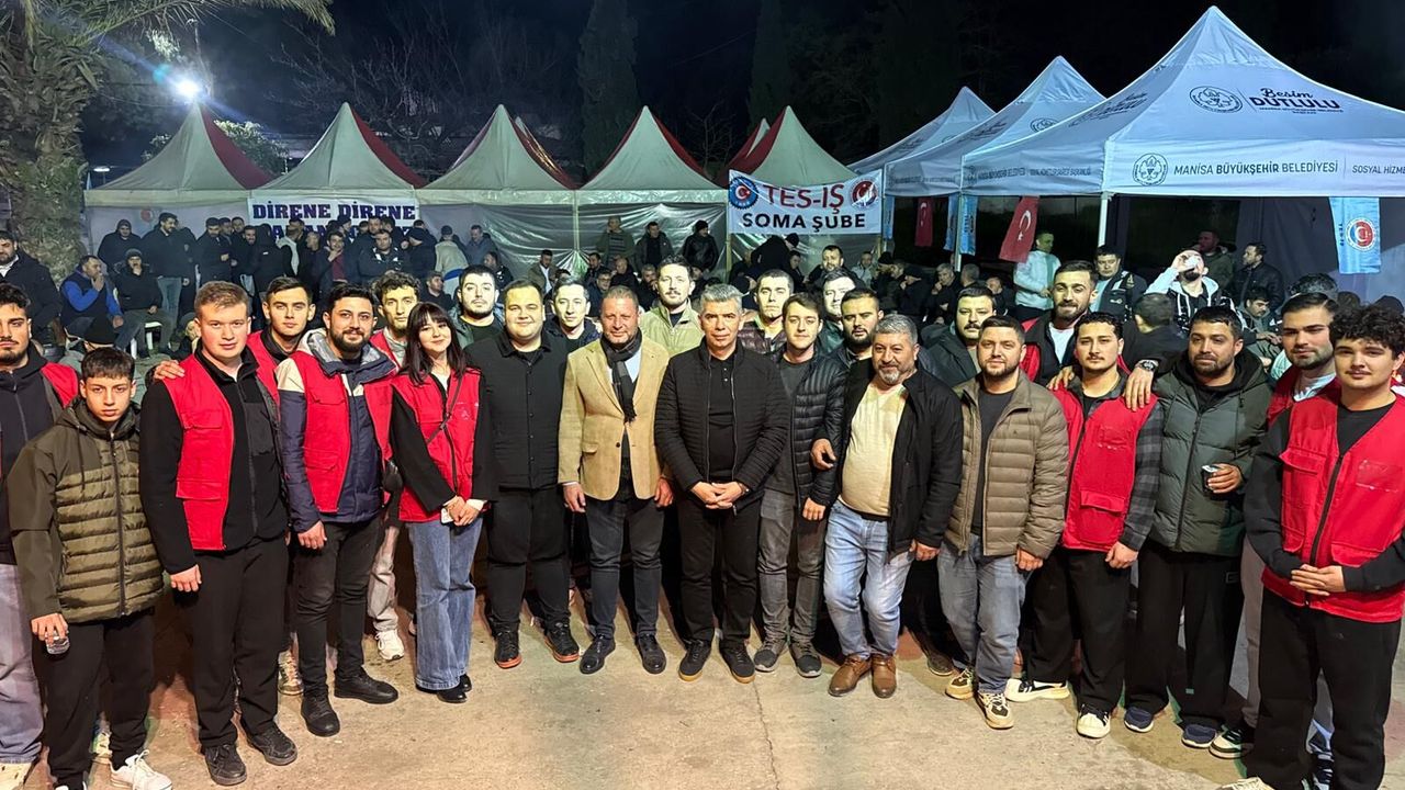 CHP Manisa Gençlik Kolları Başkanı Onur Çabuk, TES-İŞ Sendikası öncülüğünde Soma Termik Santrali’nde üretimin durdurulması kararına karşı düzenlenen eylemlerin üçüncü gününde işçilerle birlikte iftar programına katıldı.