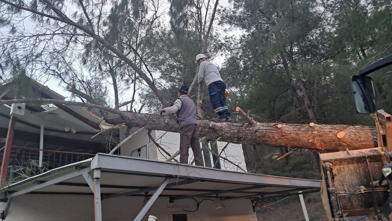 Öte yandan ekiplerin, ilçe genelinde rüzgar nedeniyle devrilen ağaçları kaldırma çalışmaları sürüyor.