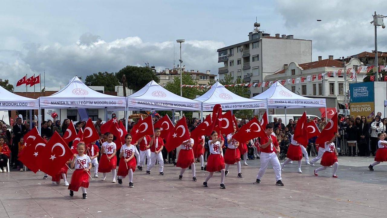Manisa’da 23 Nisan Ulusal Egemenlik ve Çocuk Bayramı'nın 106’ncı yılı dolayısıyla tören düzenlendi. Cumhuriyet Meydanı’nda bulunan Atatürk ve Milli Egemenlik Anıtına çelenk sunuldu.